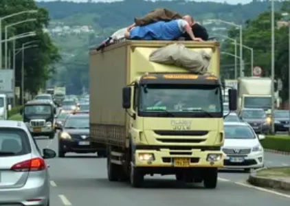 Caminhão com carga excedente na Via Dutra fecha pista e gera congestionamento.